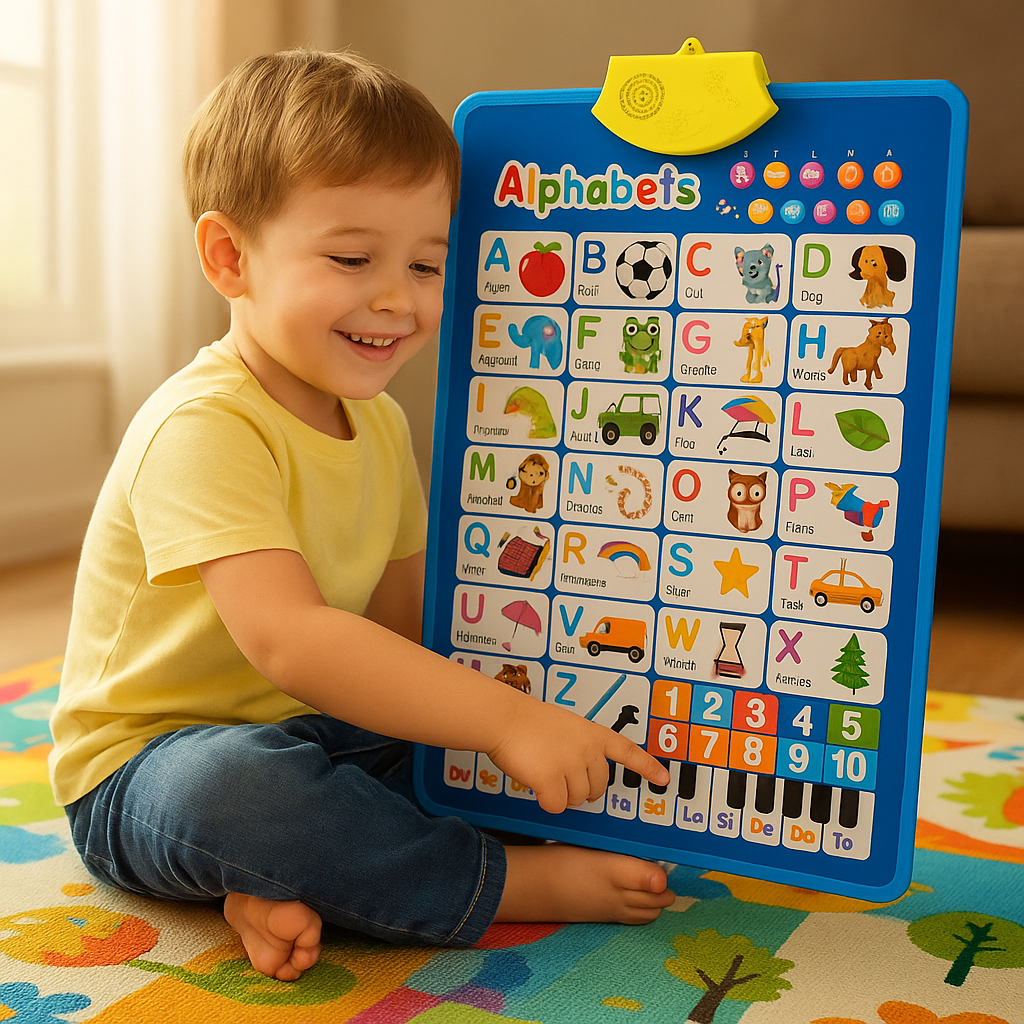Fuel your child's enthusiasm for education with Vocalet, an engaging poster featuring talking letters and numbers that animates the basics of language and mathematics, promoting essential skills in a fun and dynamic manner.