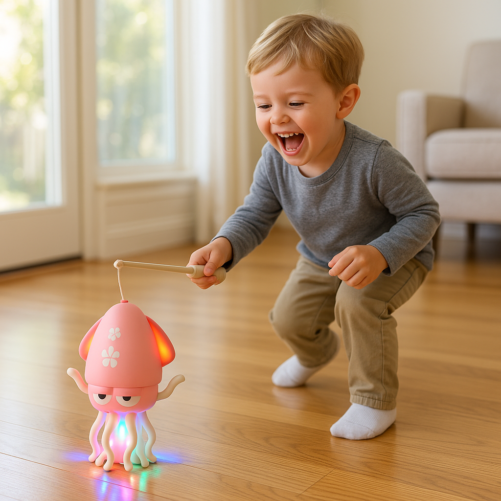Enchant your little one with Wiggleo, the delightful illuminated octopus that twirls, evades barriers, and fills the space with delightful tunes—transforming ordinary playtime into a thrilling, screen-free escapade that keeps children entertained, active, and engaged through joyful interactions.