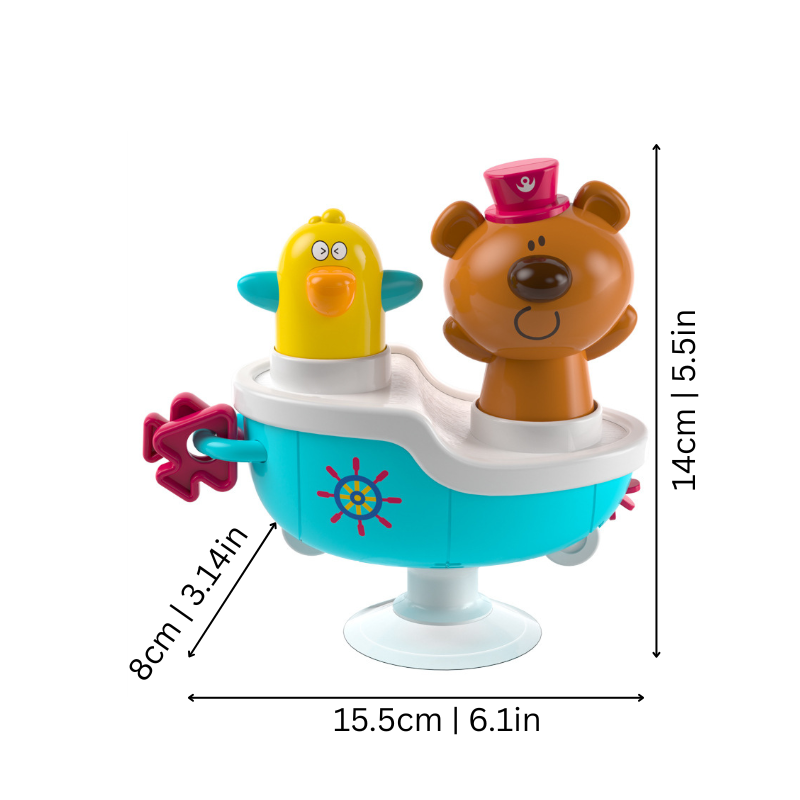 My baby lights up every time we put this little boat in front of her! The animals bob up and down to the music, and the suction cup keeps it stable on her high chair tray. The only downside is that the suction isn’t super strong on textured surfaces.