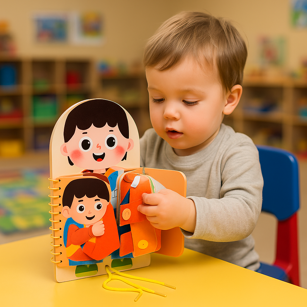 Transform quiet times into memorable experiences with Zappo—a tactile wooden activity board designed to assist toddlers in learning essential dressing abilities such as zipping, tying, and buttoning, all while fostering independence, enhancing confidence, and making education a delightful, screen-free journey.